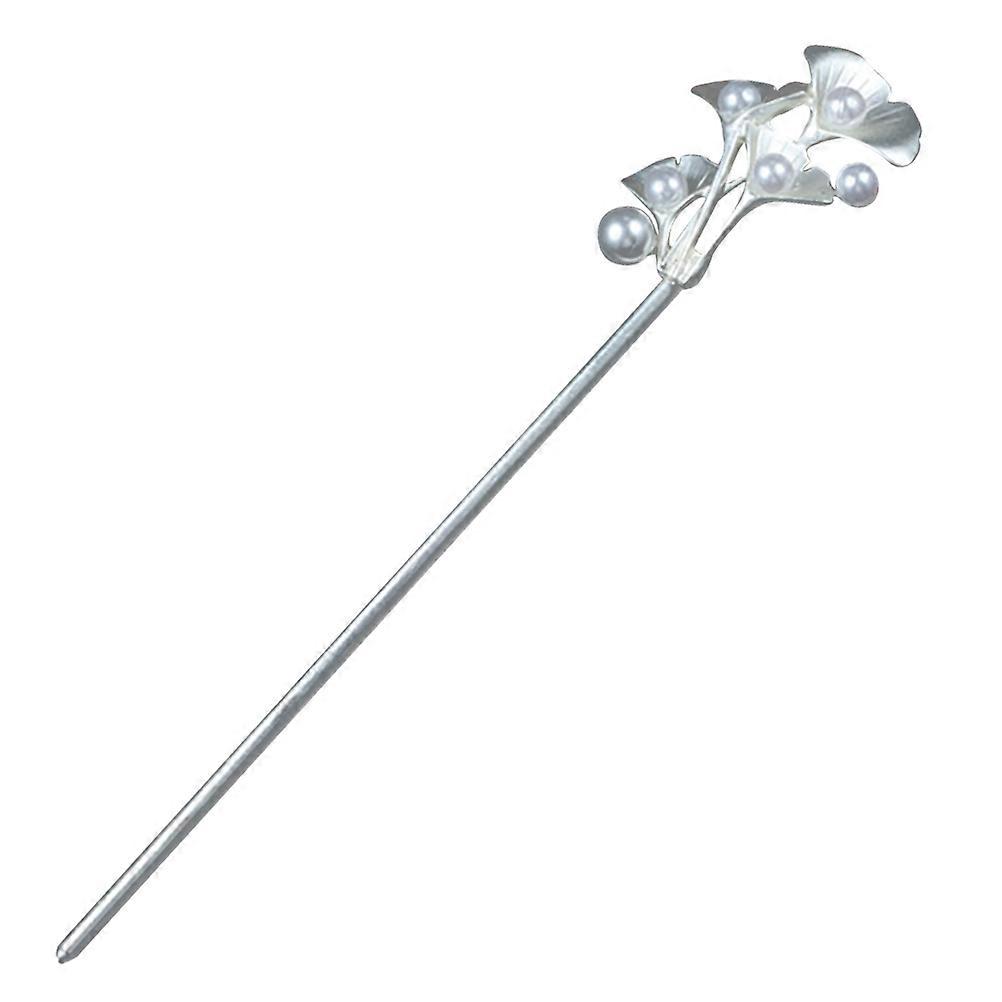 Women Hair Chopstick Bead Floral Hair Clip for Women 1Pcs Silver Elegant Accessory