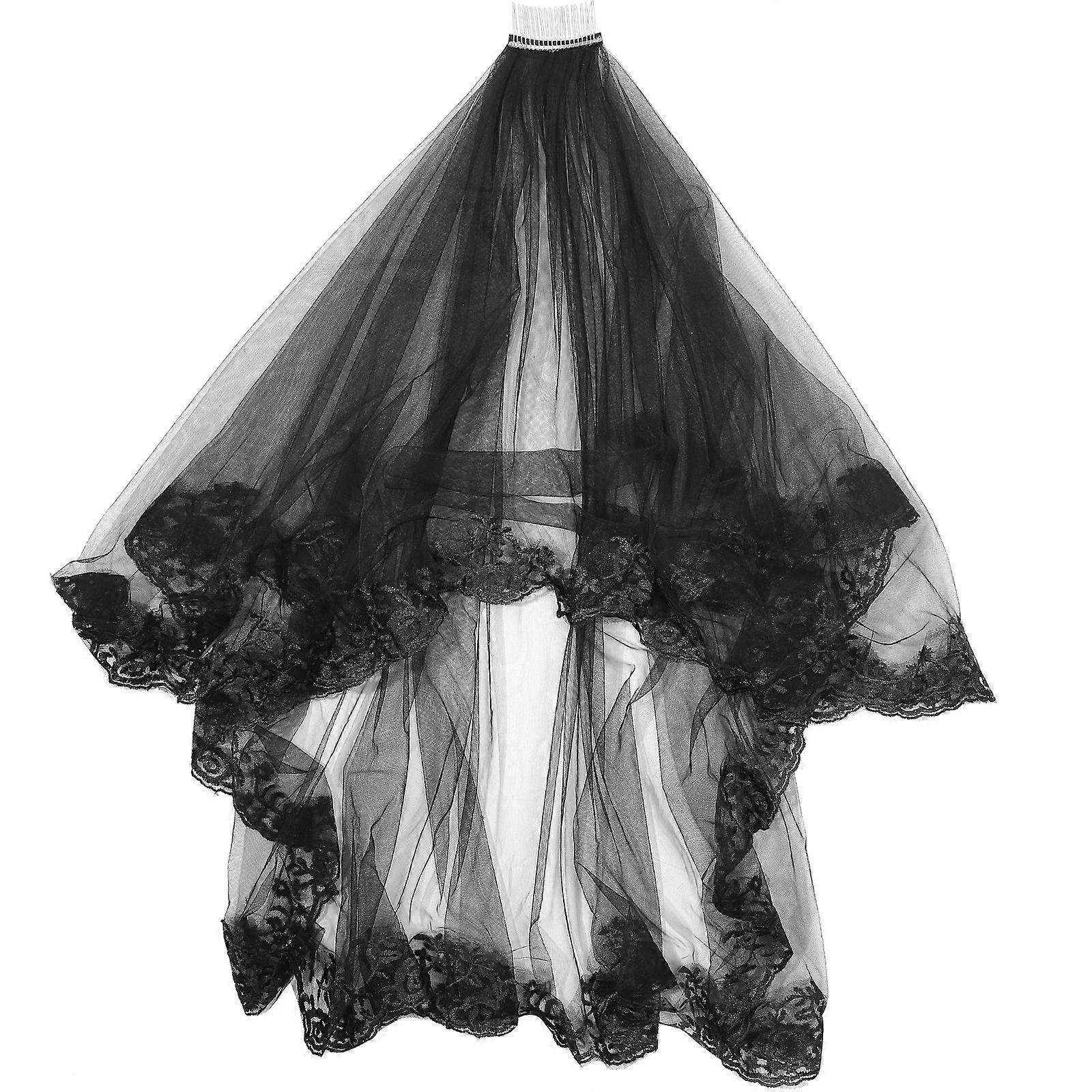 Black Lace Bride Wedding Veil for Photography Cosplay Accessory