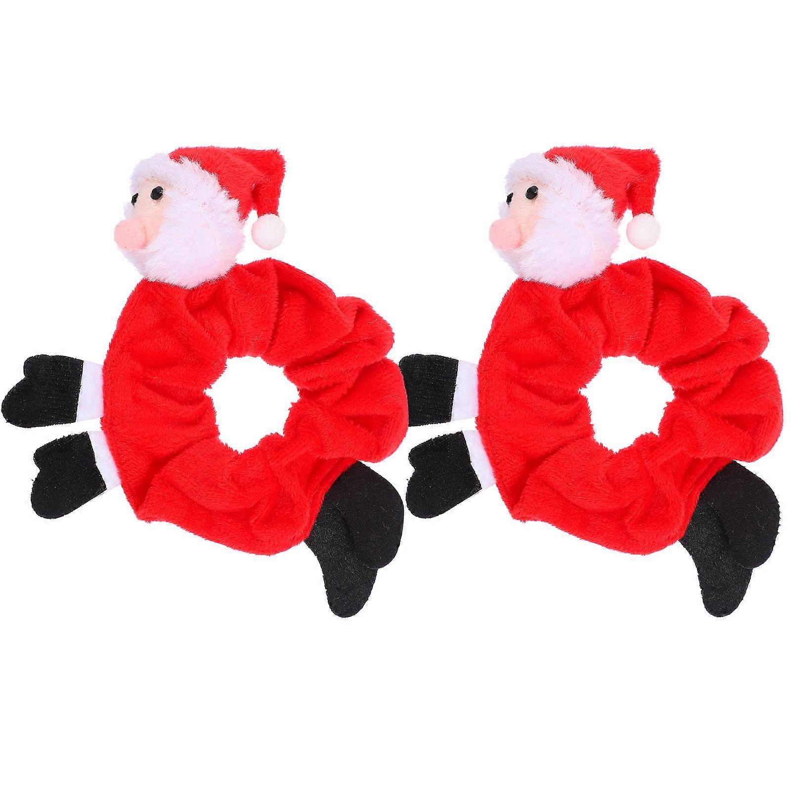 Xmas Hair Ties Christmas Hair Bands for Ponytail Holder 2Pcs Red Design