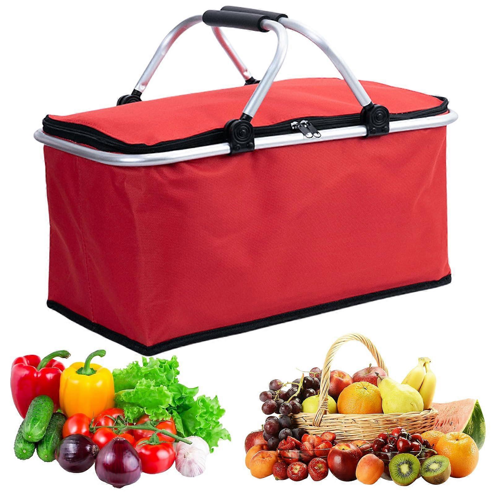 Large 30L Insulated Picnic Basket with Handle Waterproof Oxford Cloth Foldable Shopping Bag Red