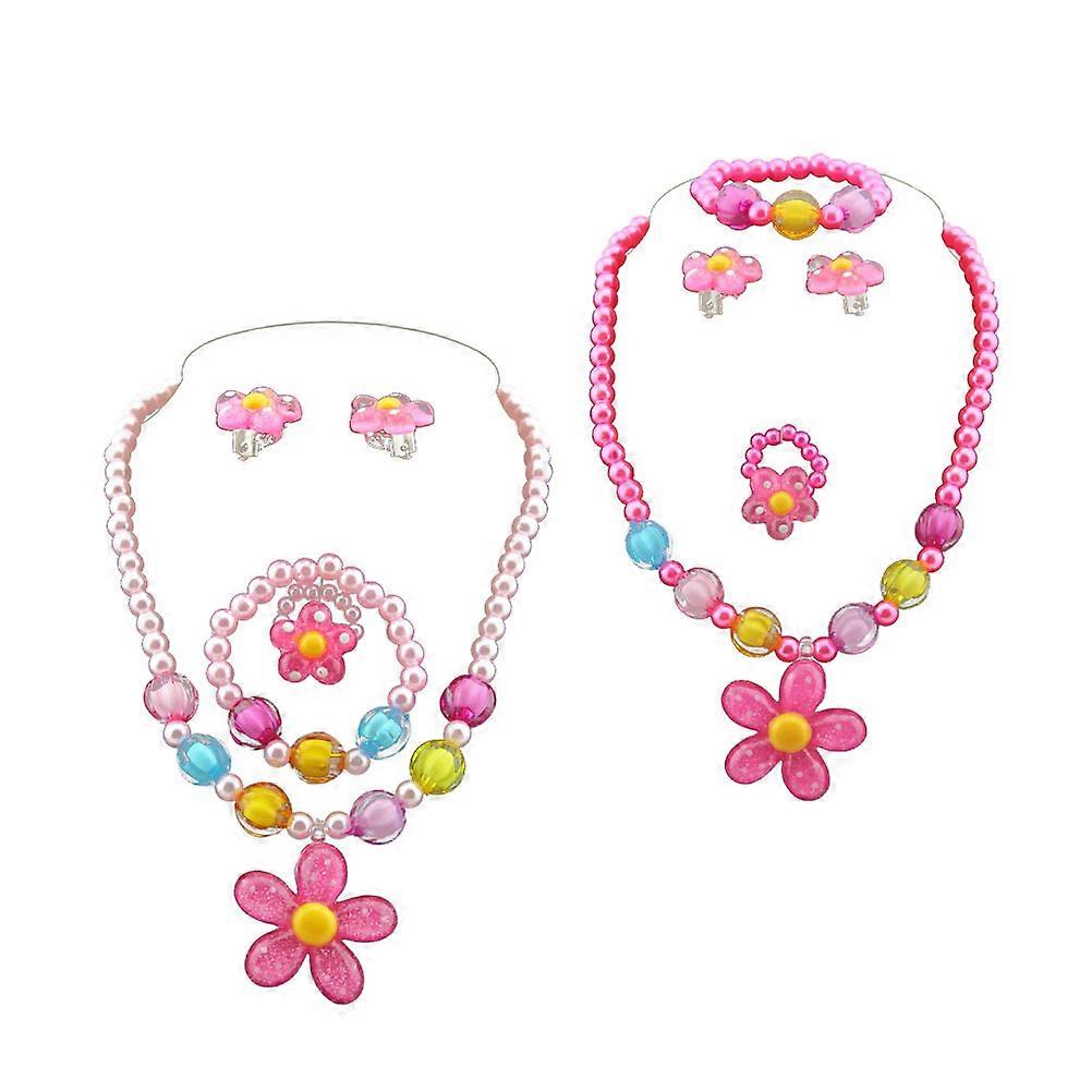 Jewelry Party Favor Plastic Flowers Necklace Bracelet Kit for Kids 2Set