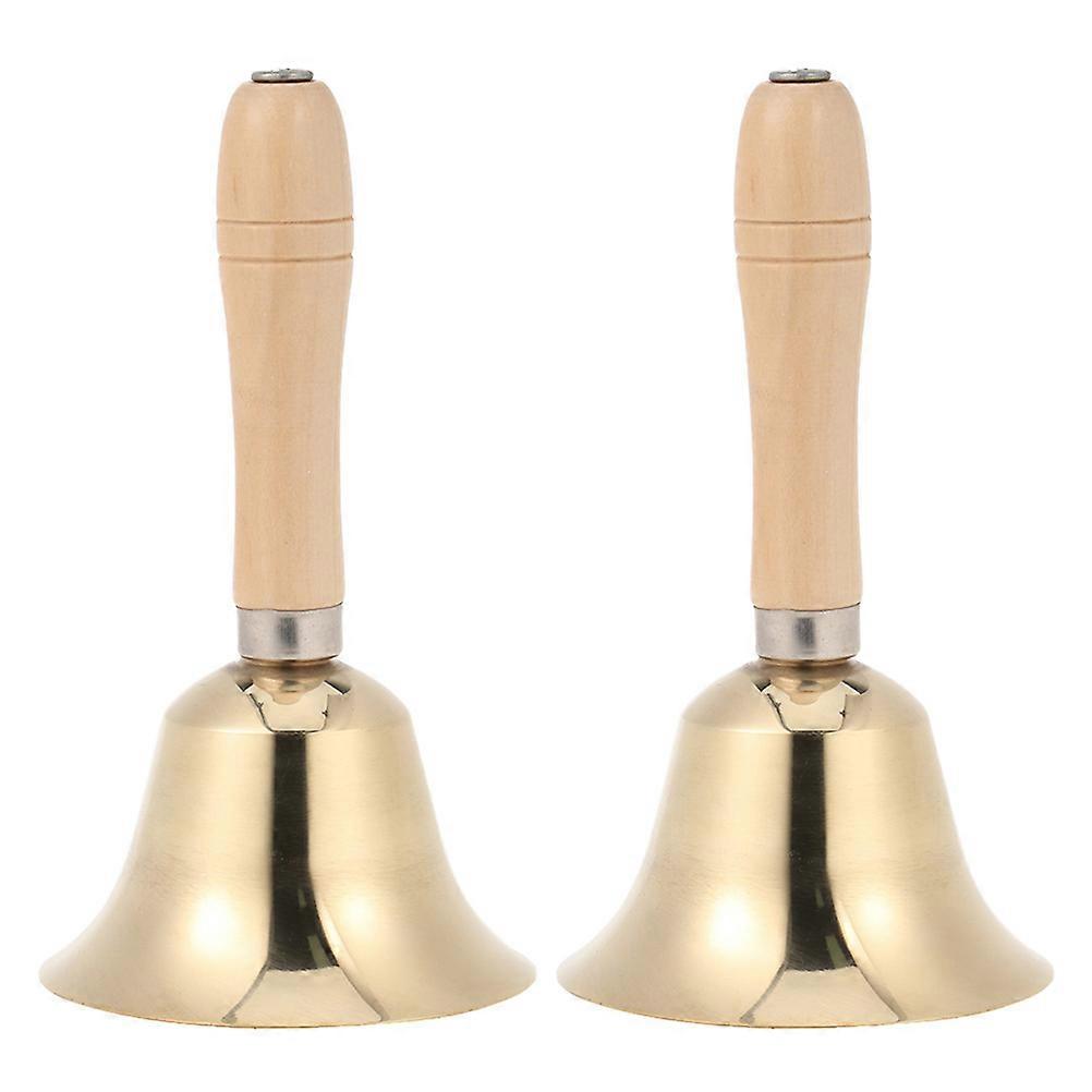 Restaurant Call Service Bell Hand Bell 2Pcs Copper with Wood Handle