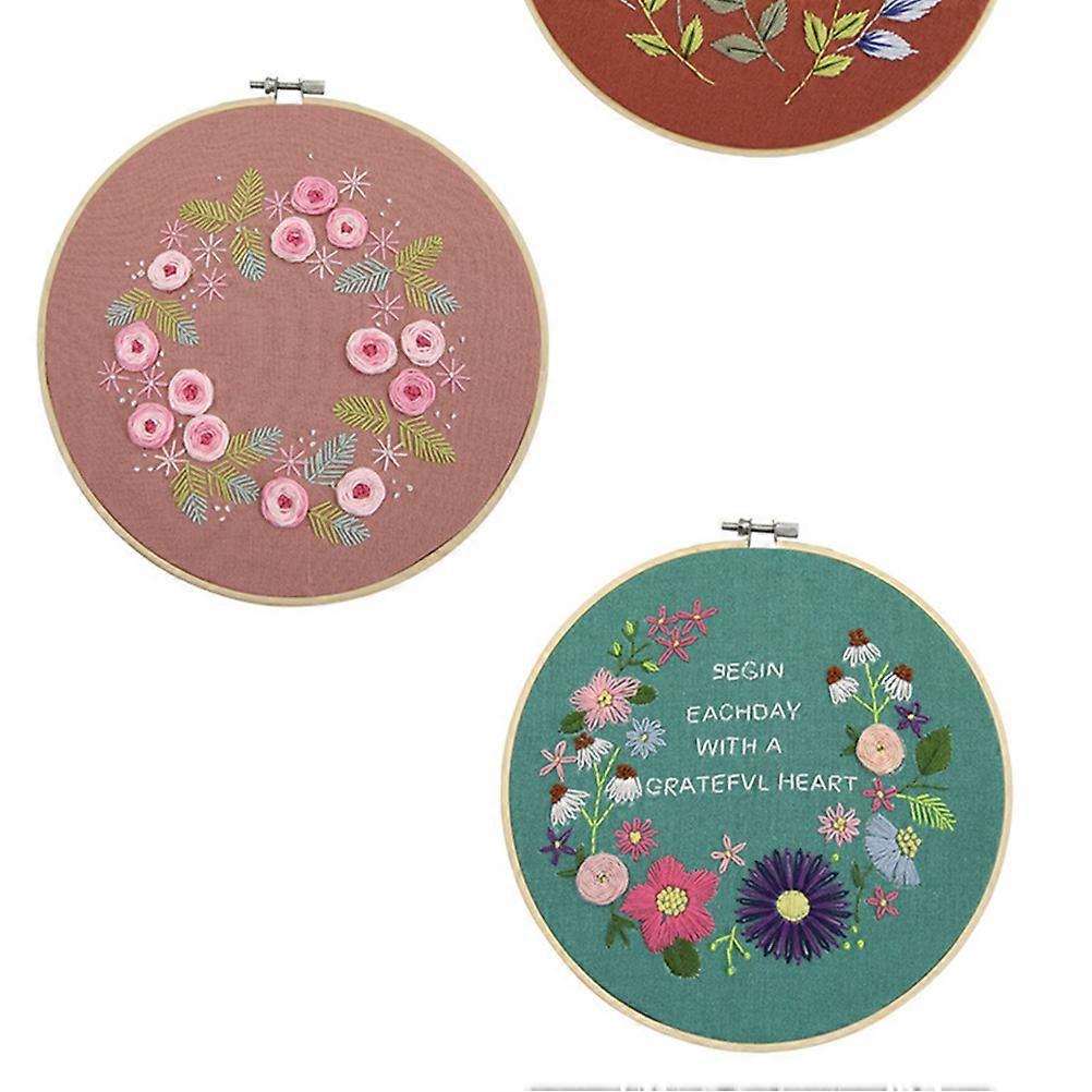 DIY Embroidery Starter Kit Green Handmade Cloth with Embroidery Tools Set