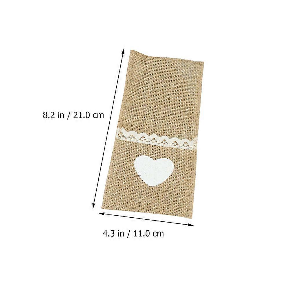 Rustic Linen Cutlery Bag Lace Cutlery Holder for Storage Use 5Pcs