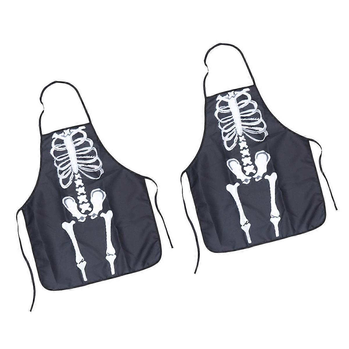 Halloween Horror Apron Adult Skeleton Printing Apron for Gardening 2Pcs