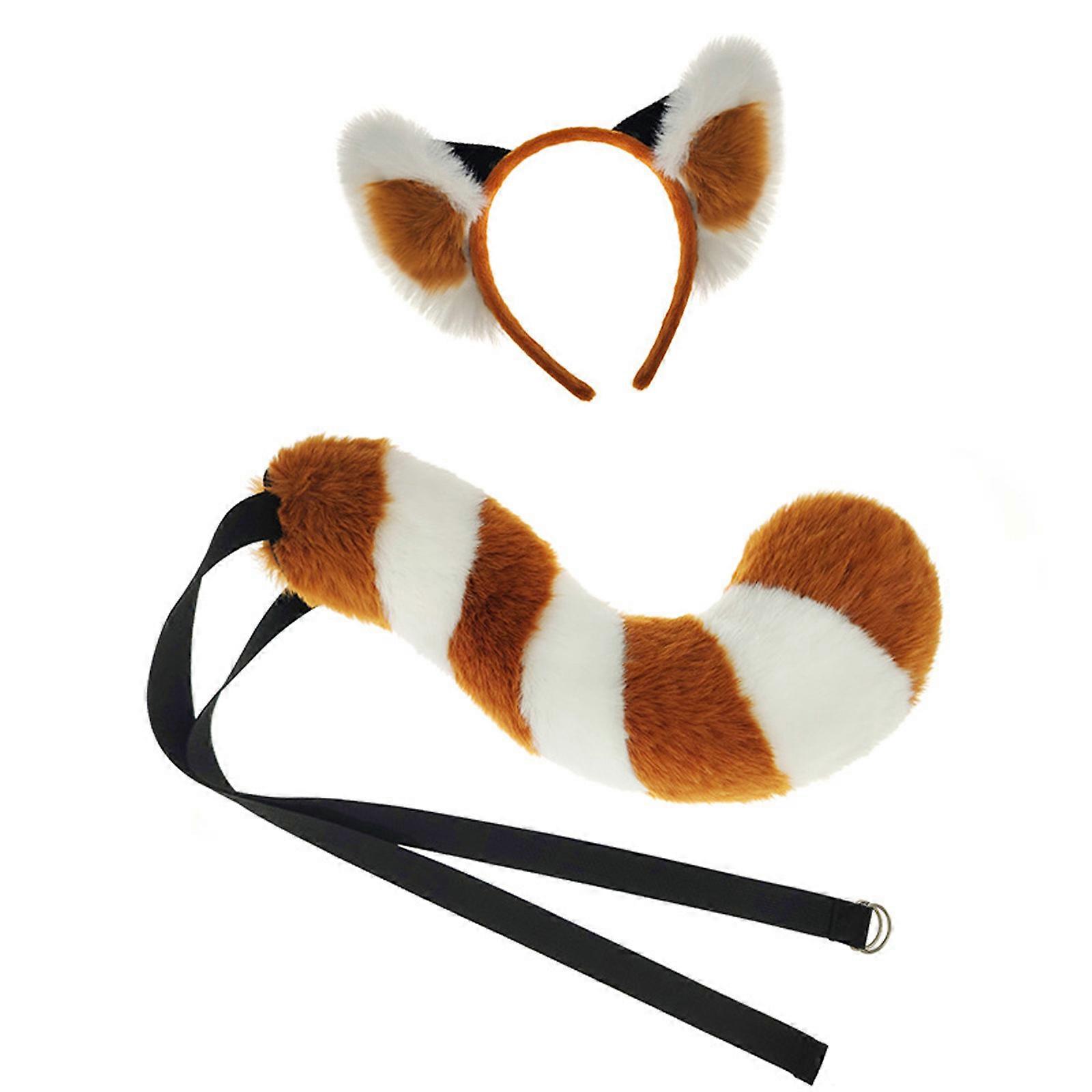 Animal Ears Headbands Animal Tail Panda Costumes Panda Ears Headband Faux Furs Tail Halloween Cosplay Party Costume Multicolor