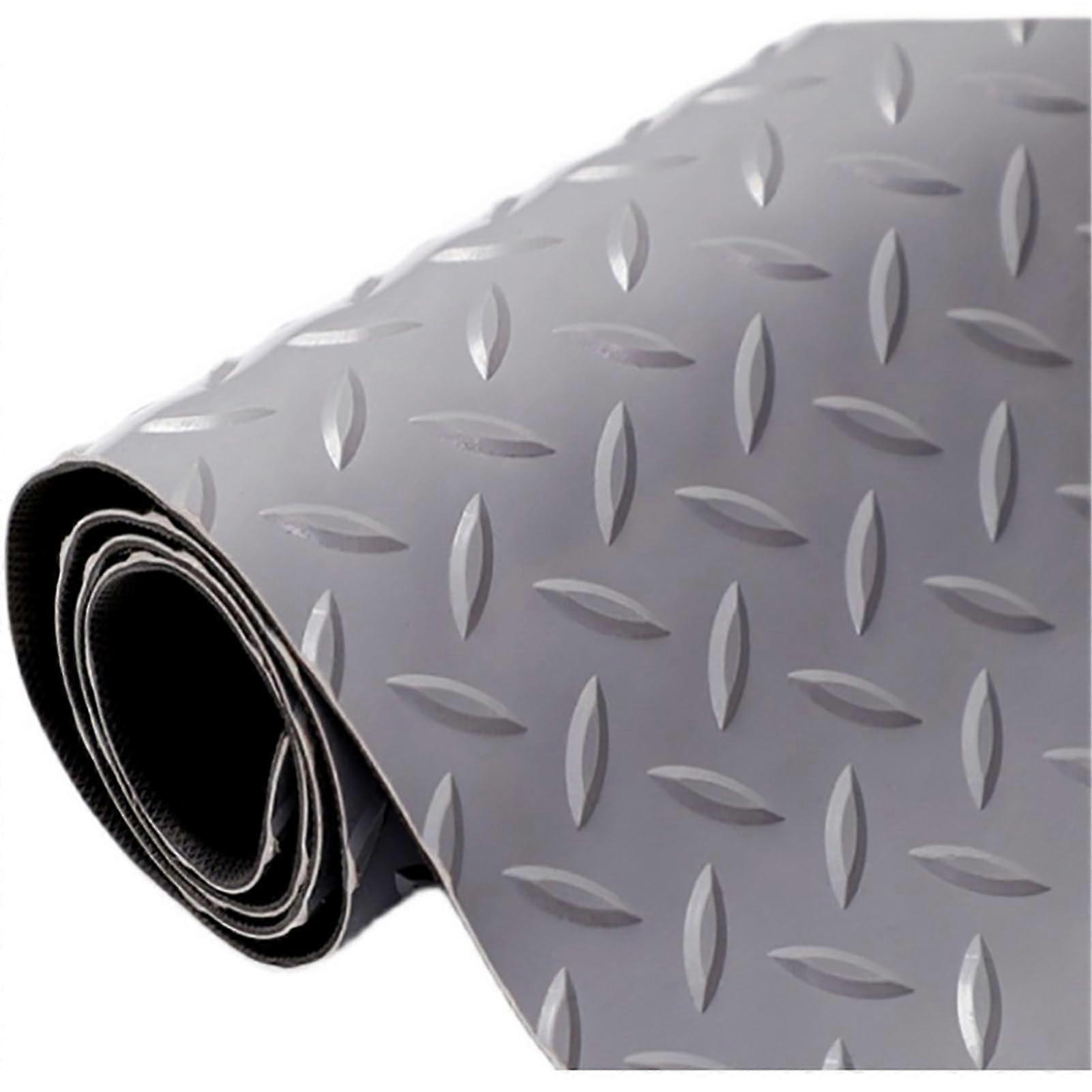 Rubber Flooring Roll 1.5mm Thick Diamond Plate PVC Garage Floor Mat NonSlip Waterproof 0.6x9m Grey