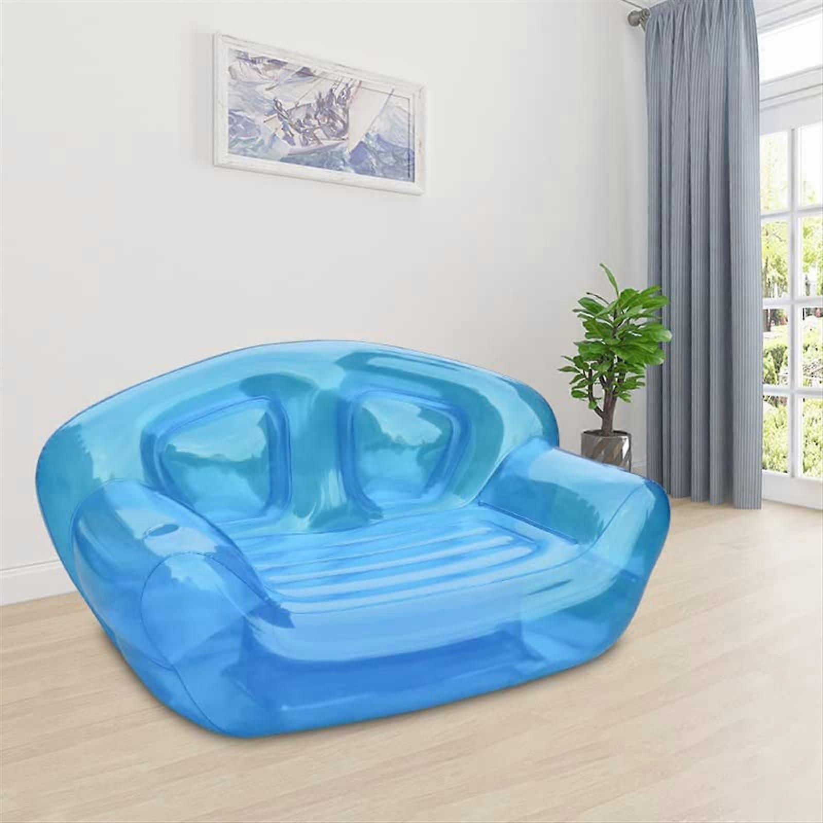 Transparent Inflatable Couch with Cup Holders PVC Blow Up Sofa for Beach Camping Pool 180x90x95CM