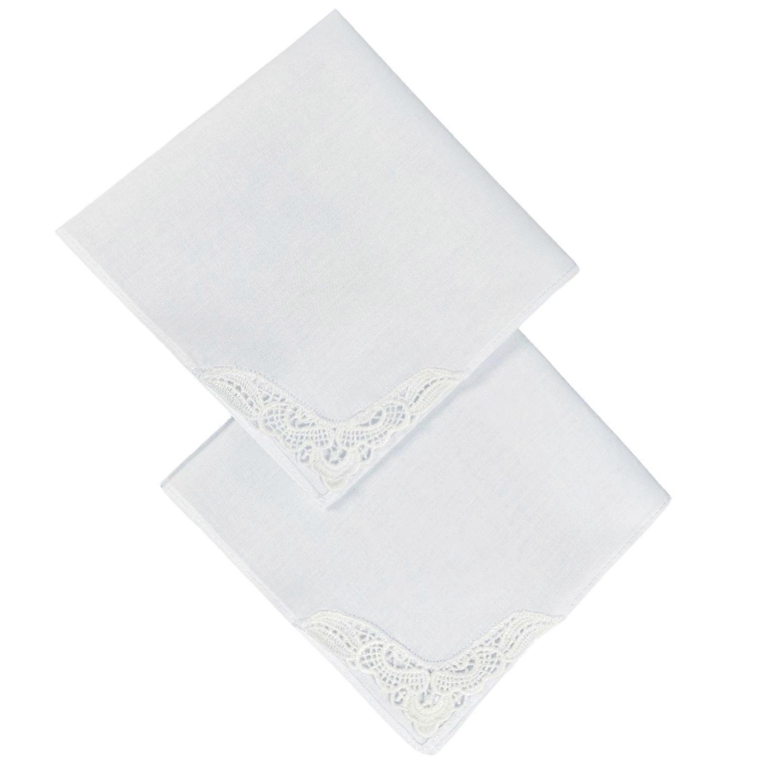 2PCS Contemporary Wedding Handkerchief Cotton Soft Ladies Hanky with Crochet Lace Decors Suitable for Afternoon Party White