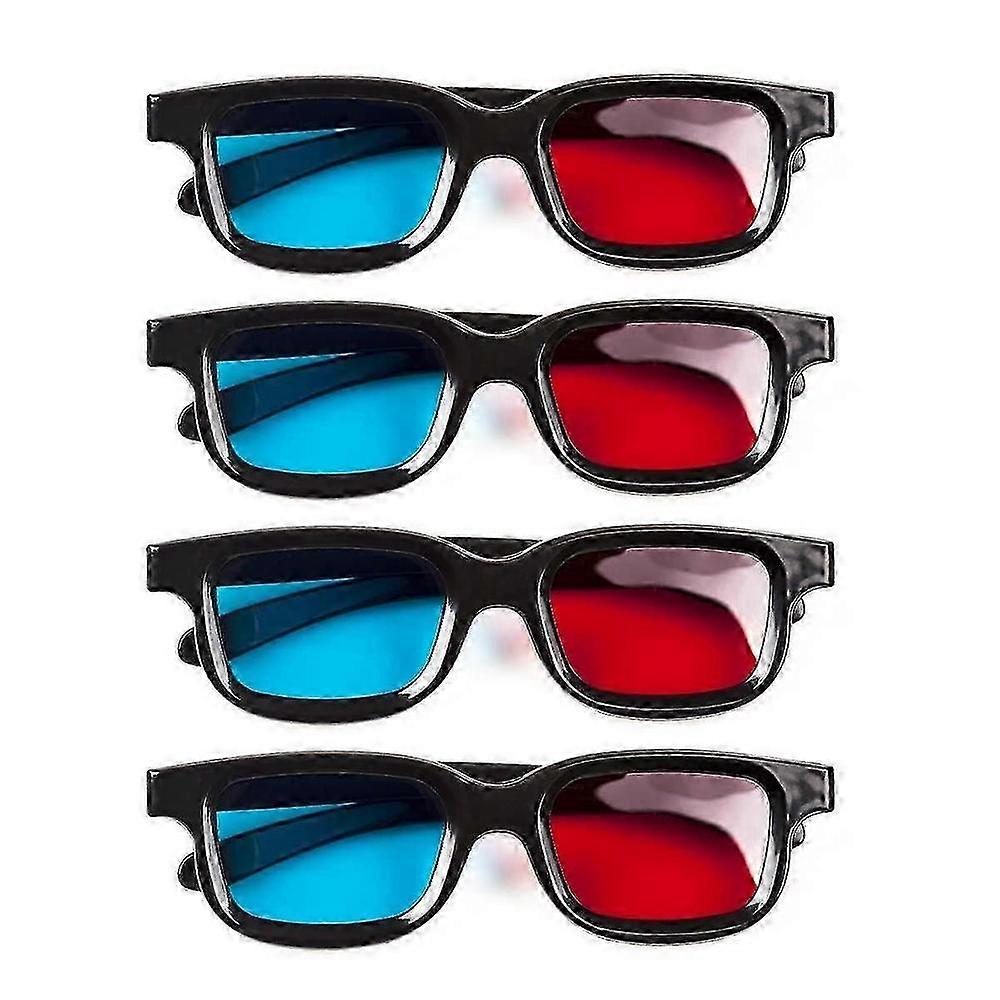 4-Pack Red & Blue Anaglyph 3D Glasses for Movies, TV, and Gaming