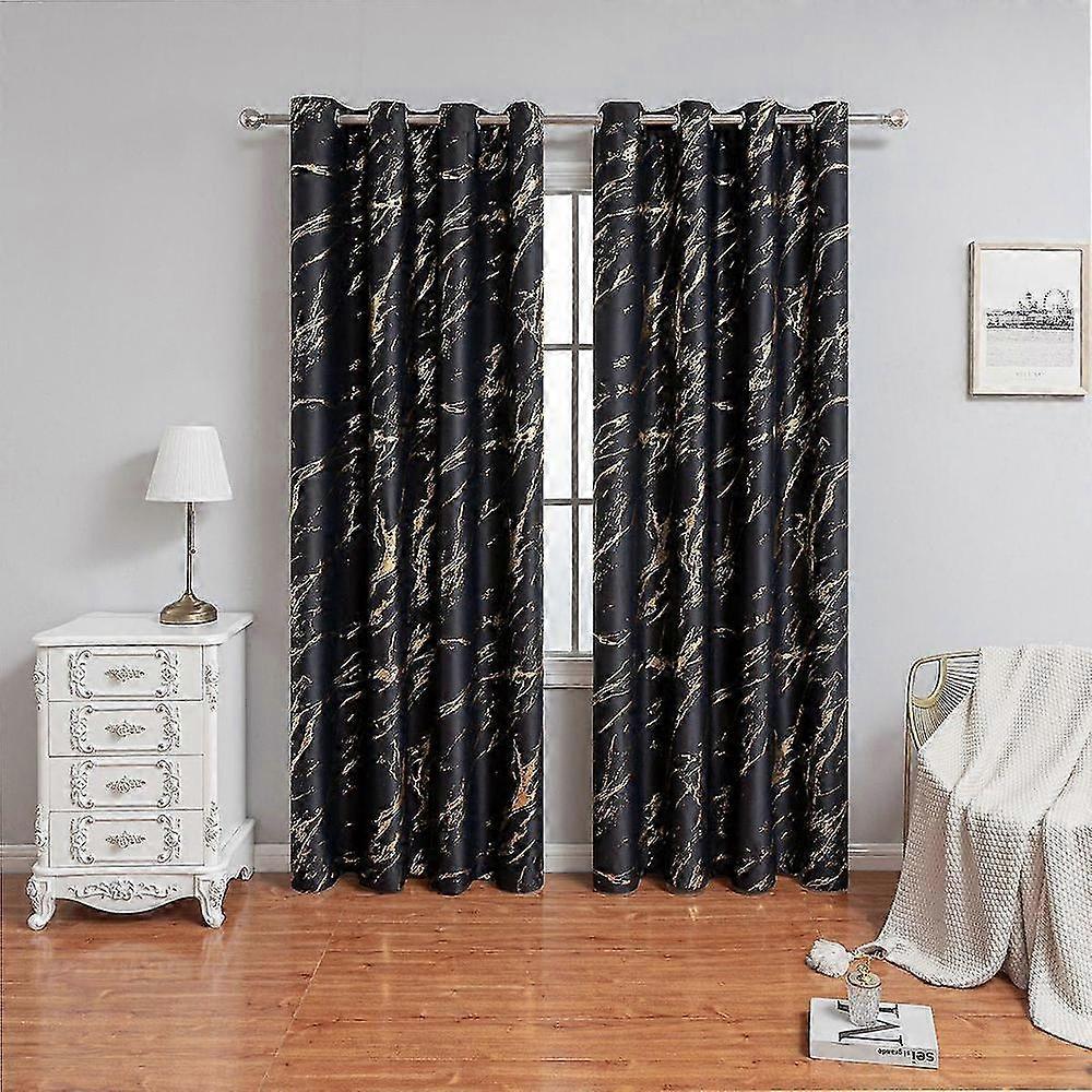 Elevate your space with these modern, geometric marble print curtains. This 2-panel set in a sophisticated cream and gold colorway features a thermal insulated blackout design, effectively blocking 75%-95% of light for enhanced privacy, improved sleep, and better temperature control. The elegant silver grommets (1.6-inch inner diameter) allow for easy installation and smooth sliding on your curtain rod. Crafted from 100% polyester, these heavy, soft, and wrinkle-resistant drapes offer a luxurious feel while providing sound dampening and energy efficiency benefits. They help protect your furniture and flooring from sun damage. For easy care, the curtains are machine washable (use non-chlorine bleach if needed), tumble dry on low, and warm iron as necessary. Perfect for adding a contemporary abstract touch to your living room, bedroom, or any window requiring a stylish and functional treatment.