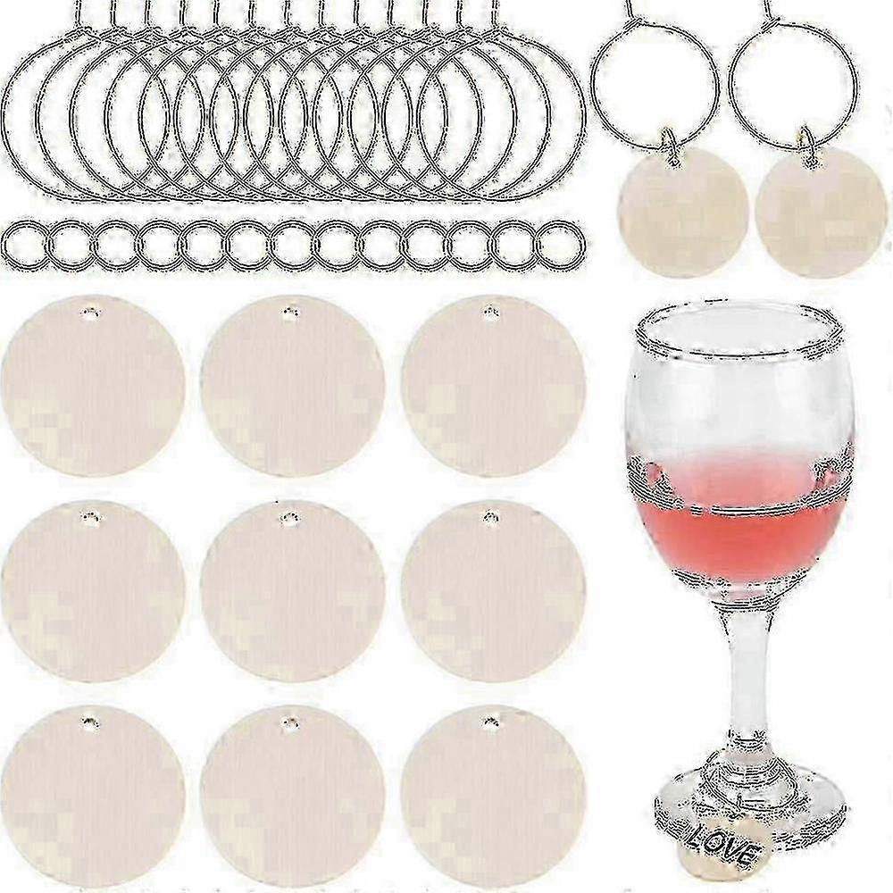 30-Piece Unfinished Wood Wine Glass Charms with Brass Rings and Jump Rings for Drink