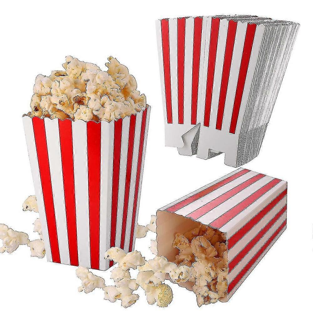 50-Piece of Red and White Striped Popcorn Boxes, Small Retro Paper Candy Containers for