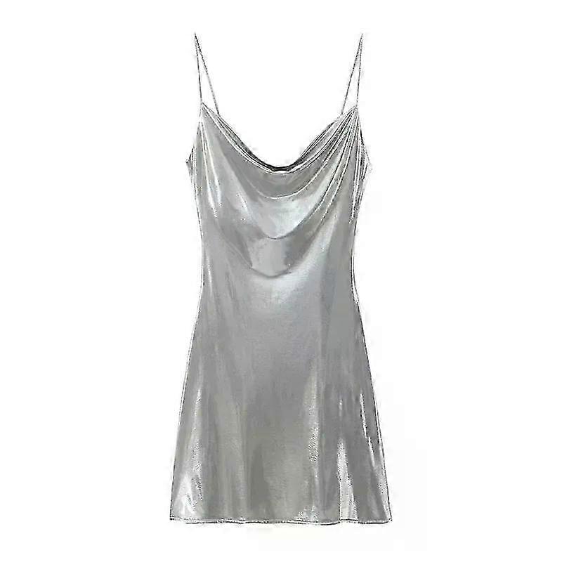 TRAF Woman Gold Mini Dress Slip Backless Short Dresses for Women Sexy Silver Coquette Party Desire Short Sleeveless Dress 25-26