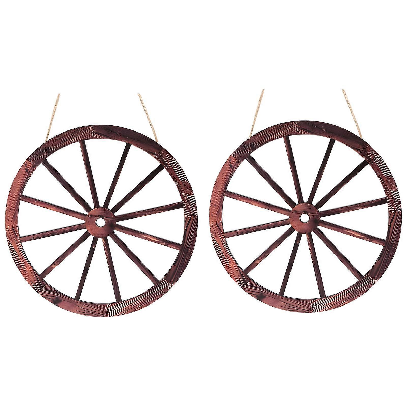 Rustic Wagon Wheel Wall Decor 2 Pcs 11.8in Farmhouse Rustic Wooden Hanging Western Style Accent