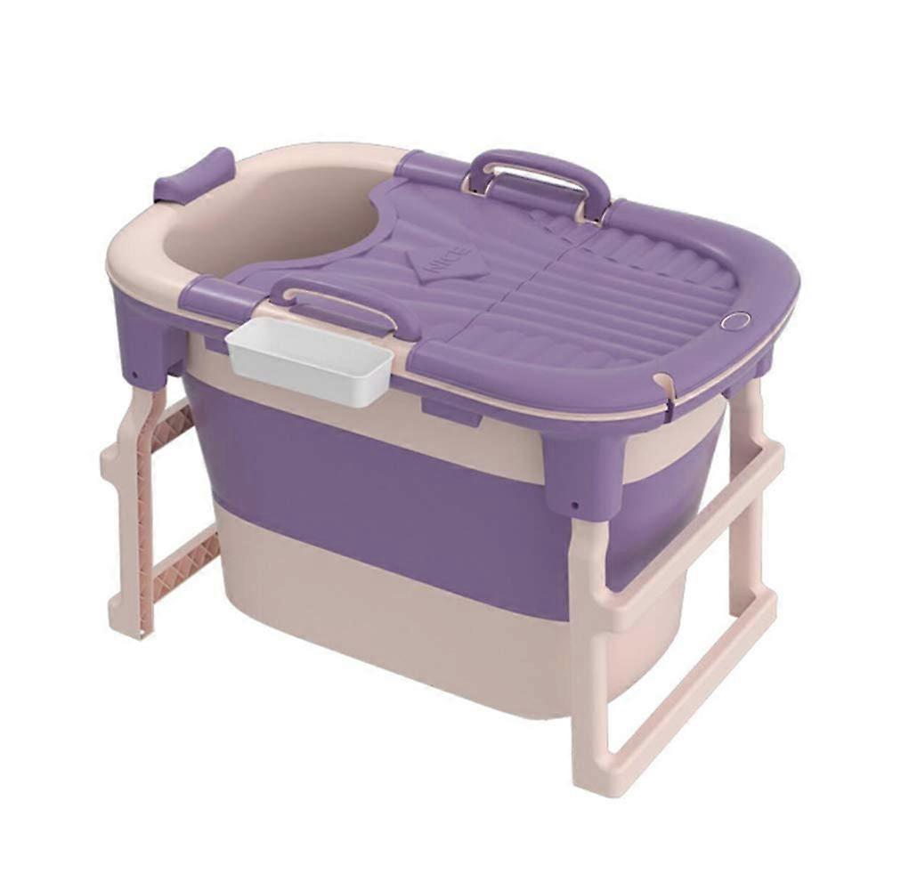 Portable Folding Bathtub for Adults with Cover, Spacious Barrel and Foot Rollers for Home Spa