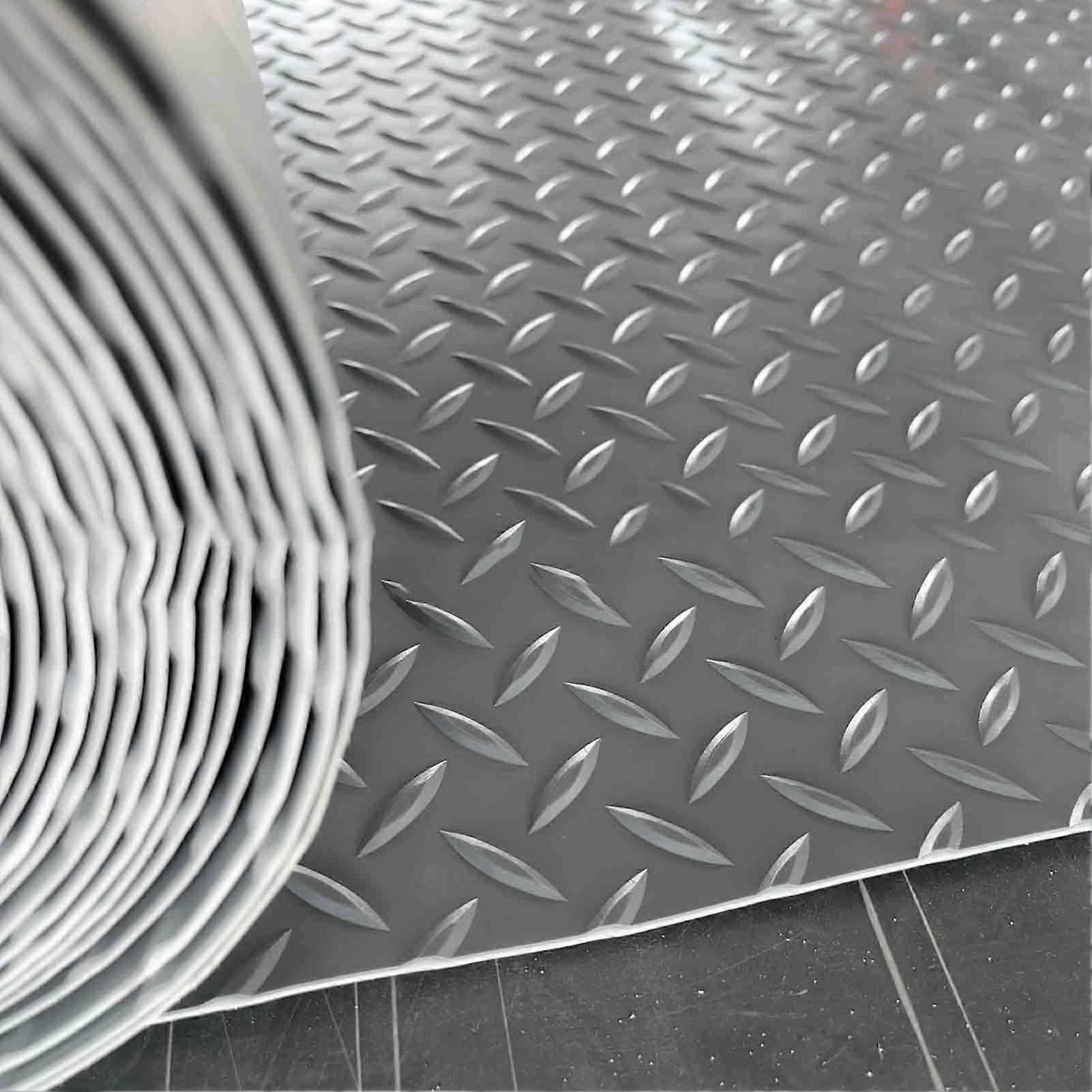 Garage Floor Mat Diamond Plate Rubber Flooring Roll, Heavy Duty NonSlip Waterproof 1.2x4.6m Grey