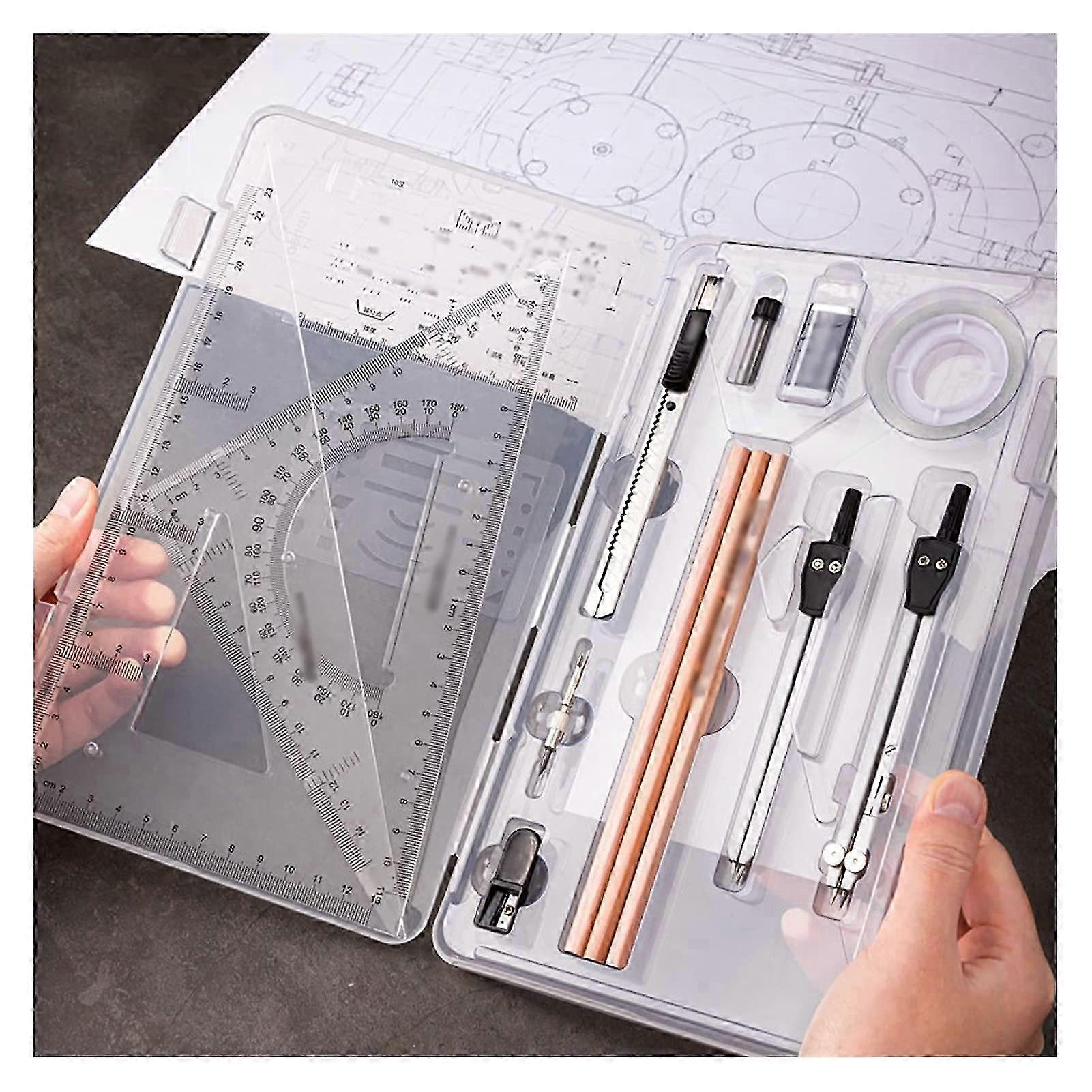 25-26 16Piece Geometry Compass Set with Pencil Refills and Protractor for School and Office