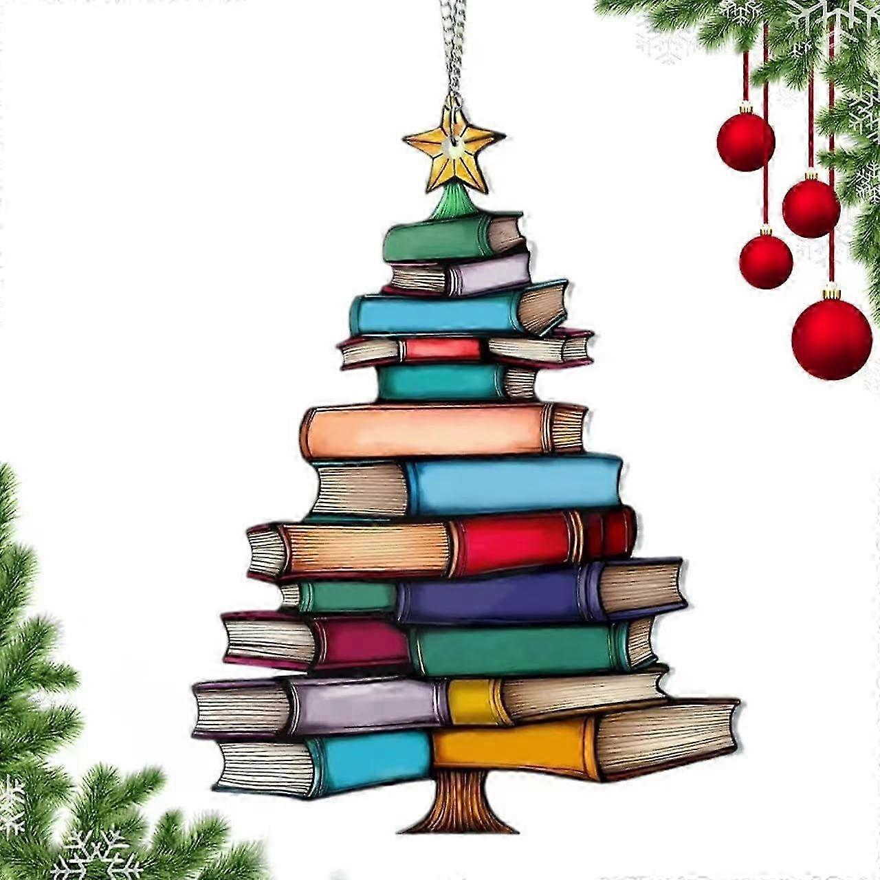 25-26 Christmas Book Tree Suncatcher Ornament, 2025 Book Ornaments for Christmas Tree, Acrylic Artsy Pendants Hanger Christmas Tree Bookish Gift