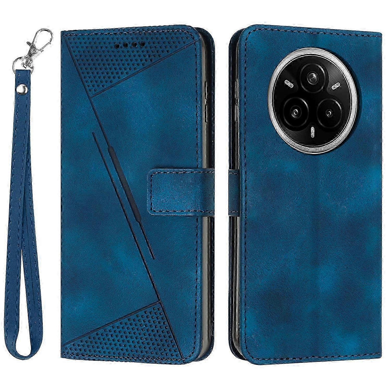 25-26 For Realme 14 Pro+ 5G Case Handbag Imprinted Triangle Leather Phone Cover - Sapphire