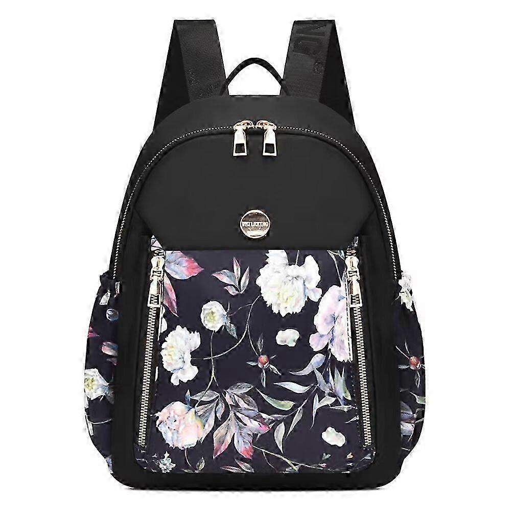 25-26 Printed Backpack Women Oxford Cloth Shoulder Bag Black Lightweight Casual Travelling