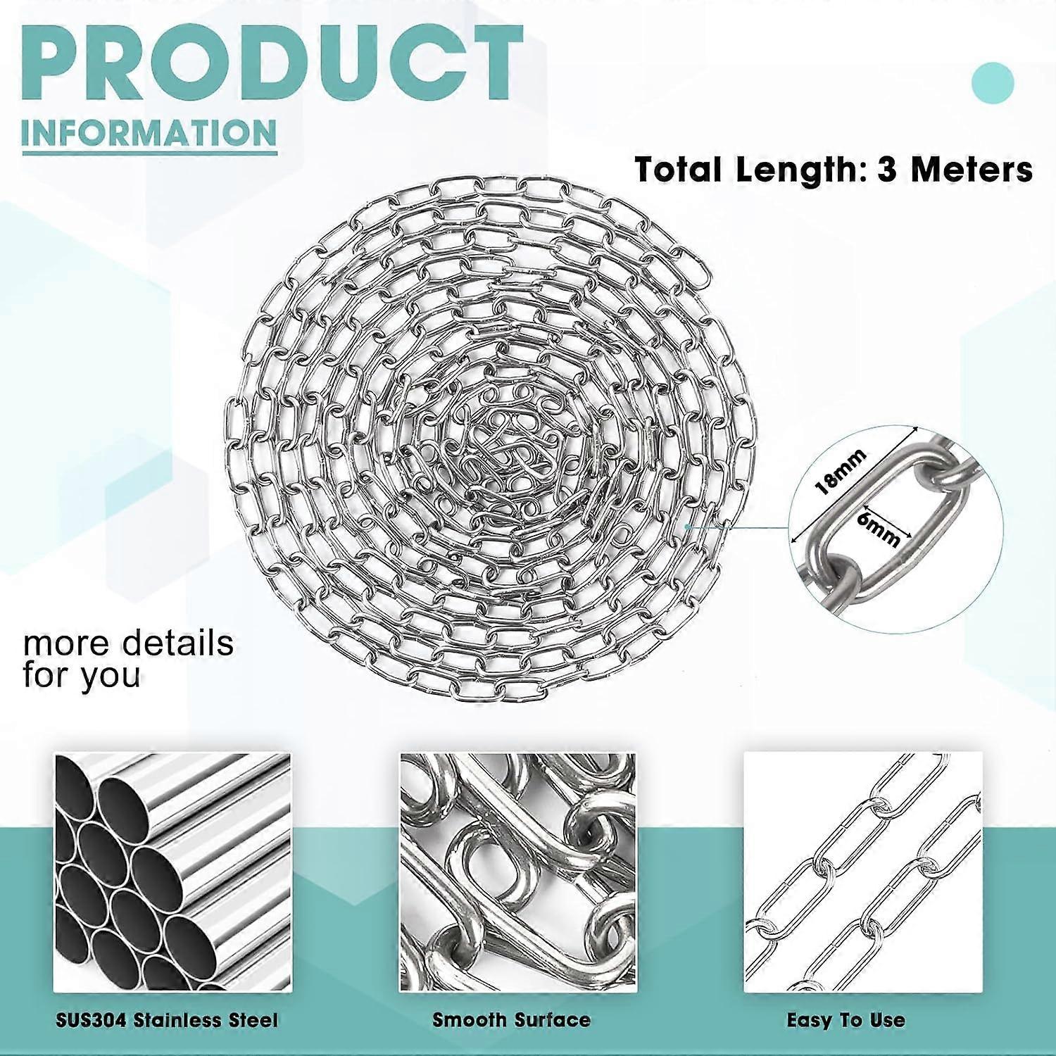 10 Feet SUS304 Stainless Steel Chain, Hanging Chain Link Light Duty Chain, Heavy Duty Hanging Chain for Home Outdoor Camping, Thickness 0.08 inches