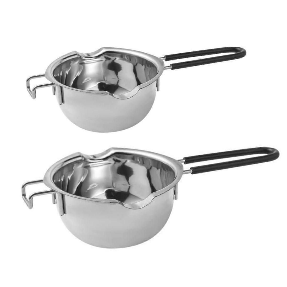 2PCS Stainless Steel Double Boiler Pot Set with Heat Resistant Handle for Chocolate Candy and Candle Making 400ml 600ml