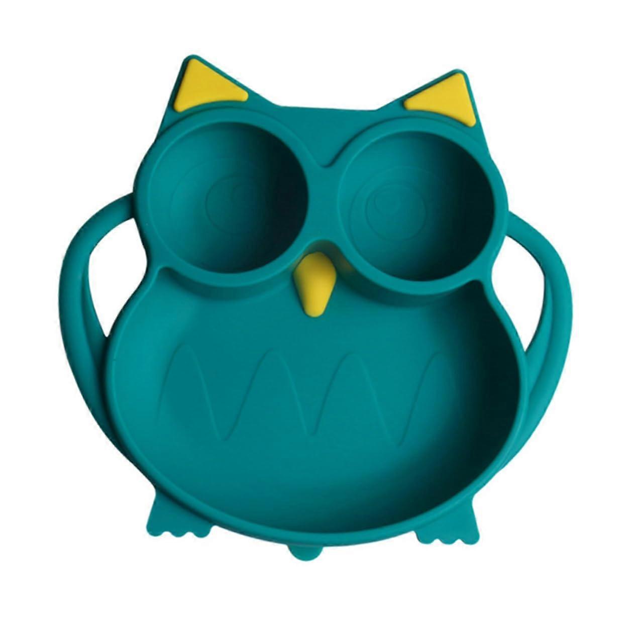 Silicone Divided Baby Suction Plate with Non Slip Base, Microwave Safe Cartoon Toddler Dish Green