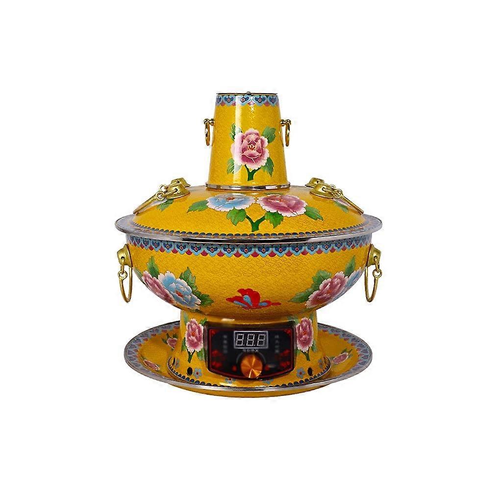 Copper Hot Pot Cloisonne Enamel Old Beijing Style Red Copper with Charcoal Base and AntiScald Handles