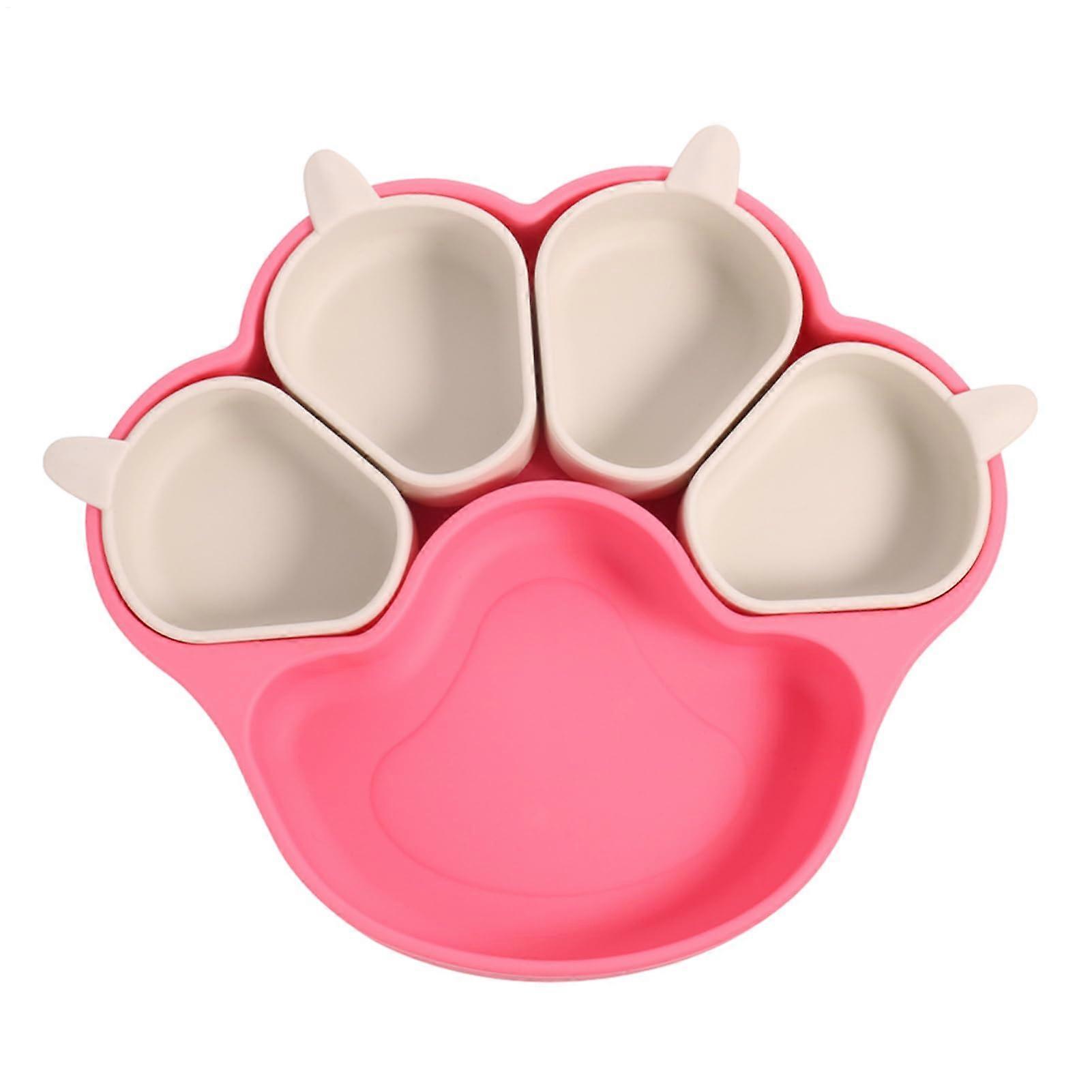 Baby Silicone Suction Plate with Cat Paw Design, Divided Toddler Dinner Tray, Dark Pink