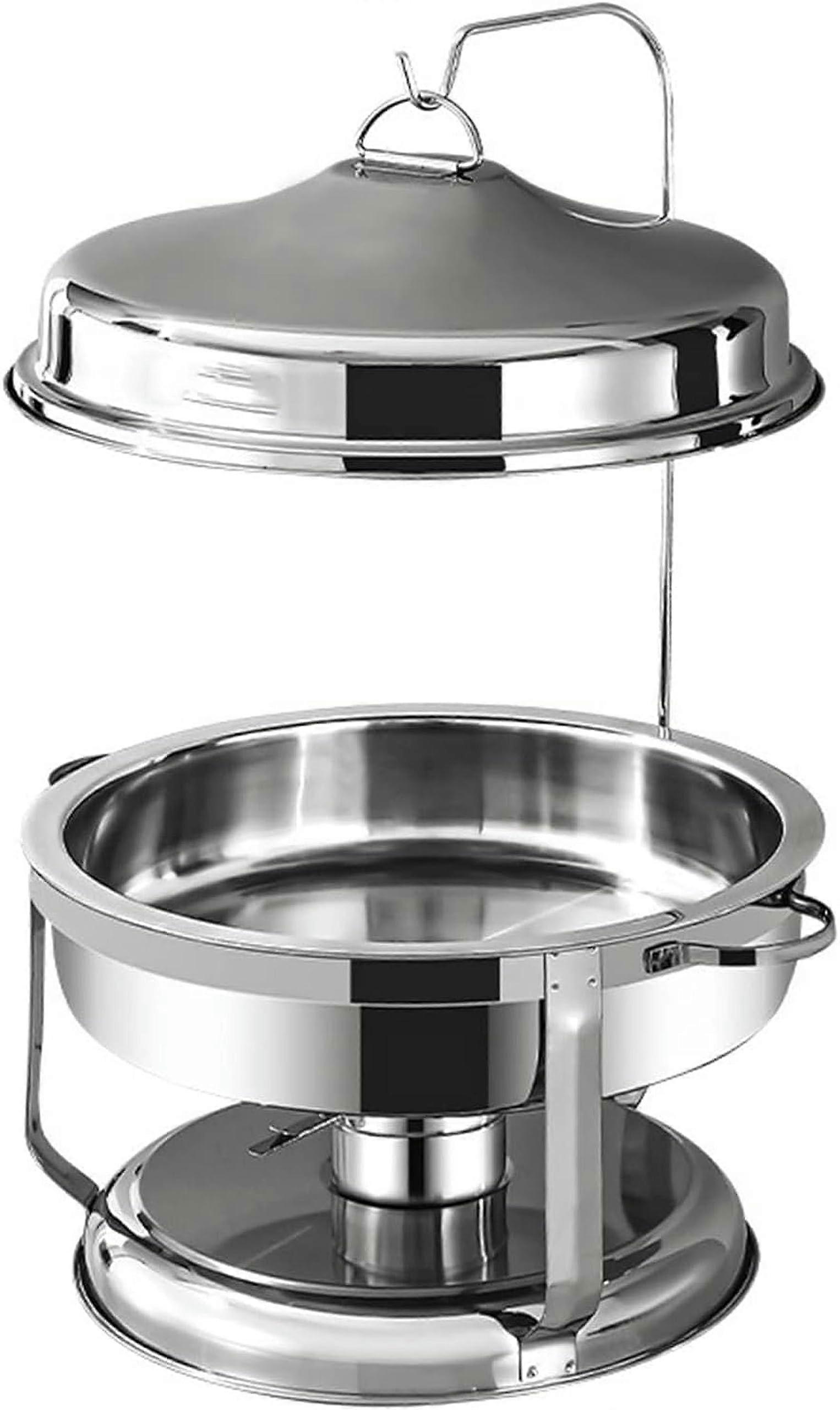 Large 9L Stainless Steel Round Chafing Dish Buffet Server with Lid and Dual Fuel Holders for Catering