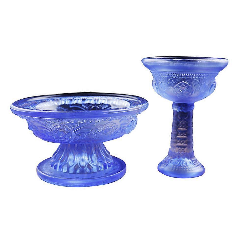 Glass Offering Bowl for Buddhist Worship 2Pcs Blue Decorative Cups