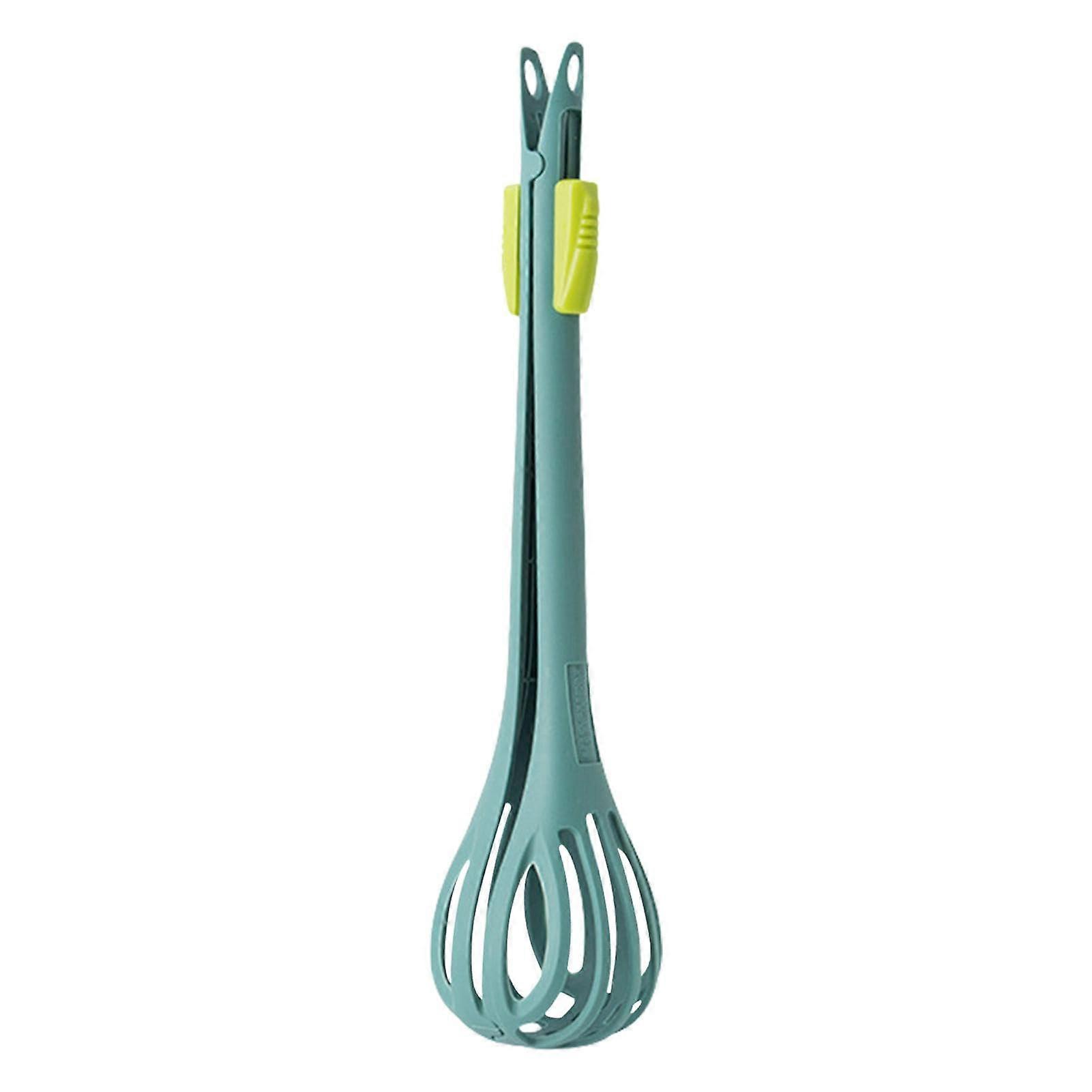 Manual Egg Whisk with Tongs, 2 in 1 Handheld Egg Beater for Cooking, Mixing, HeatResistant Grip, Green