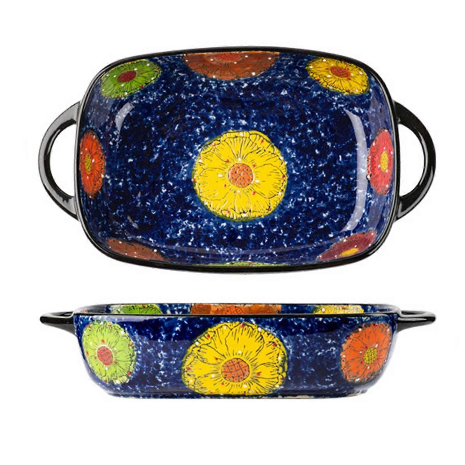 Ceramic Lasagna Baking Dish with Handles, Large Oven Safe Flower Print Casserole Pan 730ml