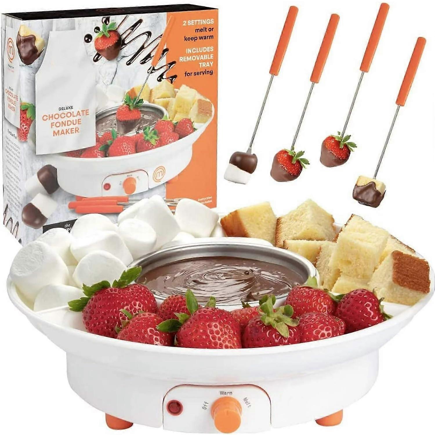 Chocolate Fondue Maker Electric Pot with Stainless Steel Bowl, 4 Forks and Tray for Quick Melting