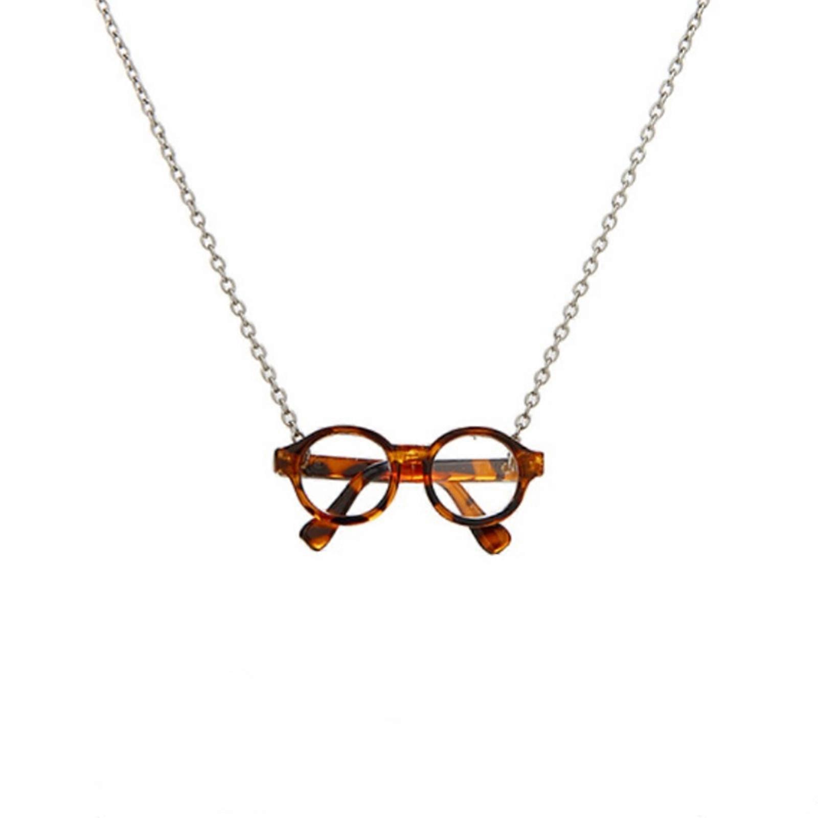 Elegant Mini Glasses Necklace for Layering with Sweaters or Standalone Piece Clavicle Chain in Parties and Gatherings Tortoiseshell