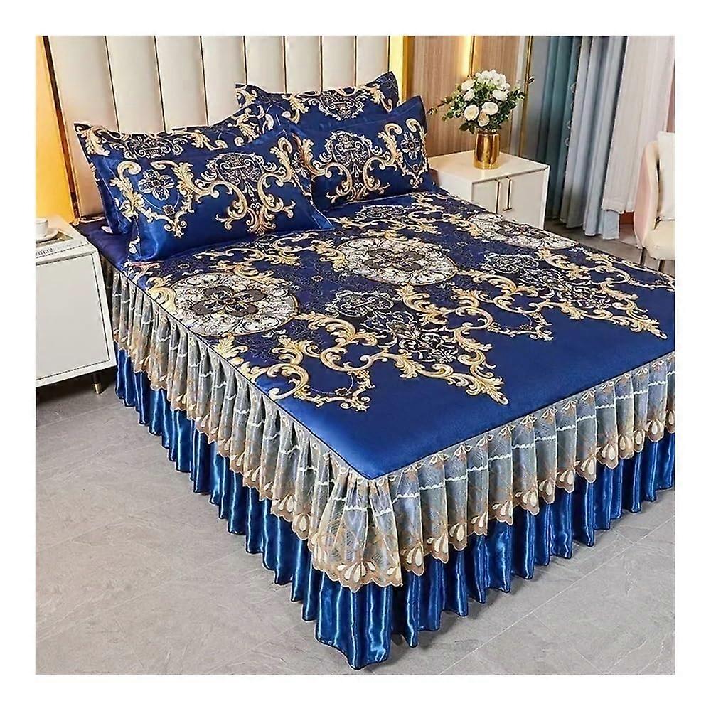 3PCS Ruffle Skirt Bedspread Set 180x200cm Printed Bed Skirt Coverlets Bedding Color 2 Dust Cover for Bedroom