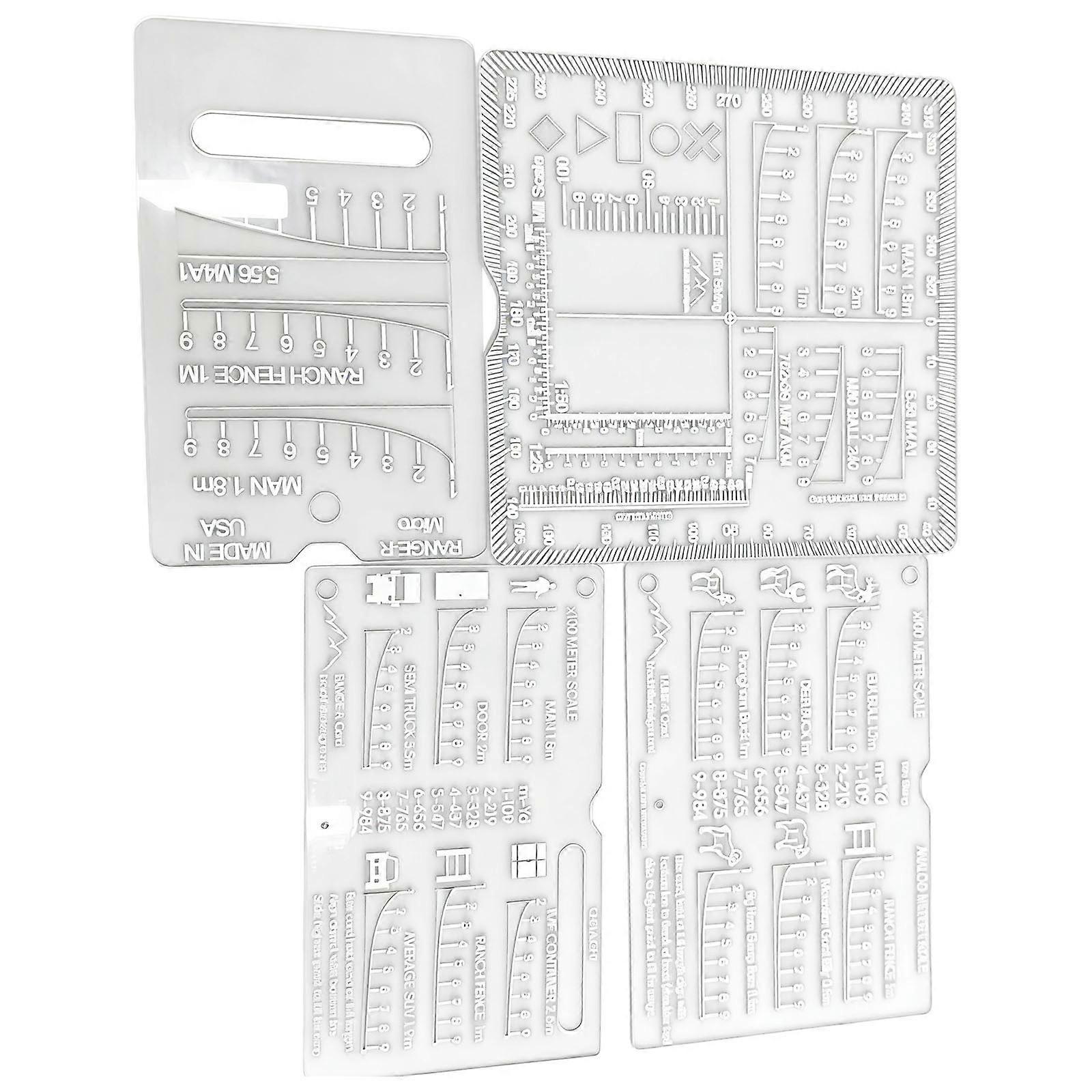 4Pcs Acrylic Rangefinder Card 4 Different Styles Ranging Card for Outdoor Hunting Fishing Camping Precise Measurement Multicolor