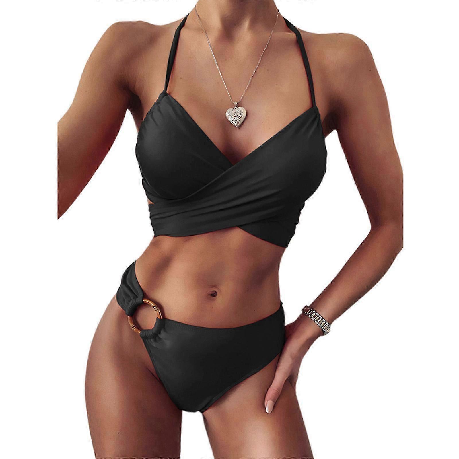 Halter Bikinis Set Backless Swimwear Two Pieces O-Ring Swimsuit Beachwear Wrap Cutout Bathing Suits for Women Female nude XL hot