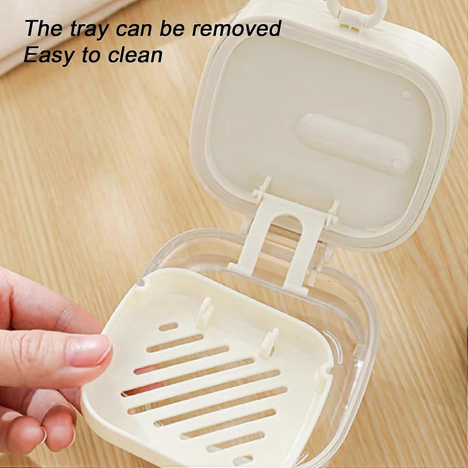 Denture Cleaning Case with Mirror, Hygienic Soaking Container for Travel, Retainer Box White