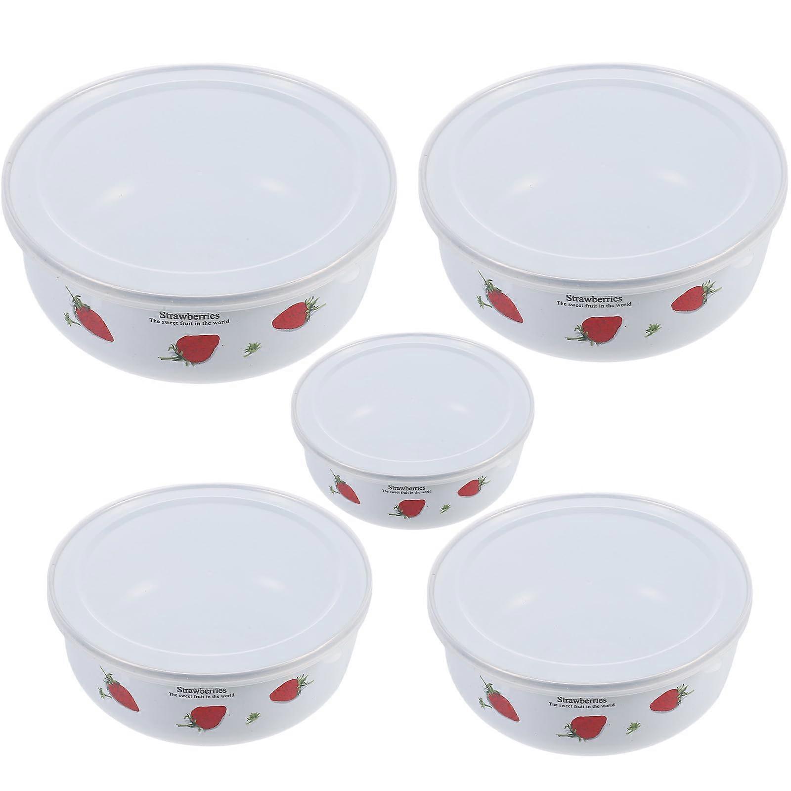 Enamel Mixing Bowls with Lids Set of 5 MultiSize for Kitchen and Camping Food Prep and Storage