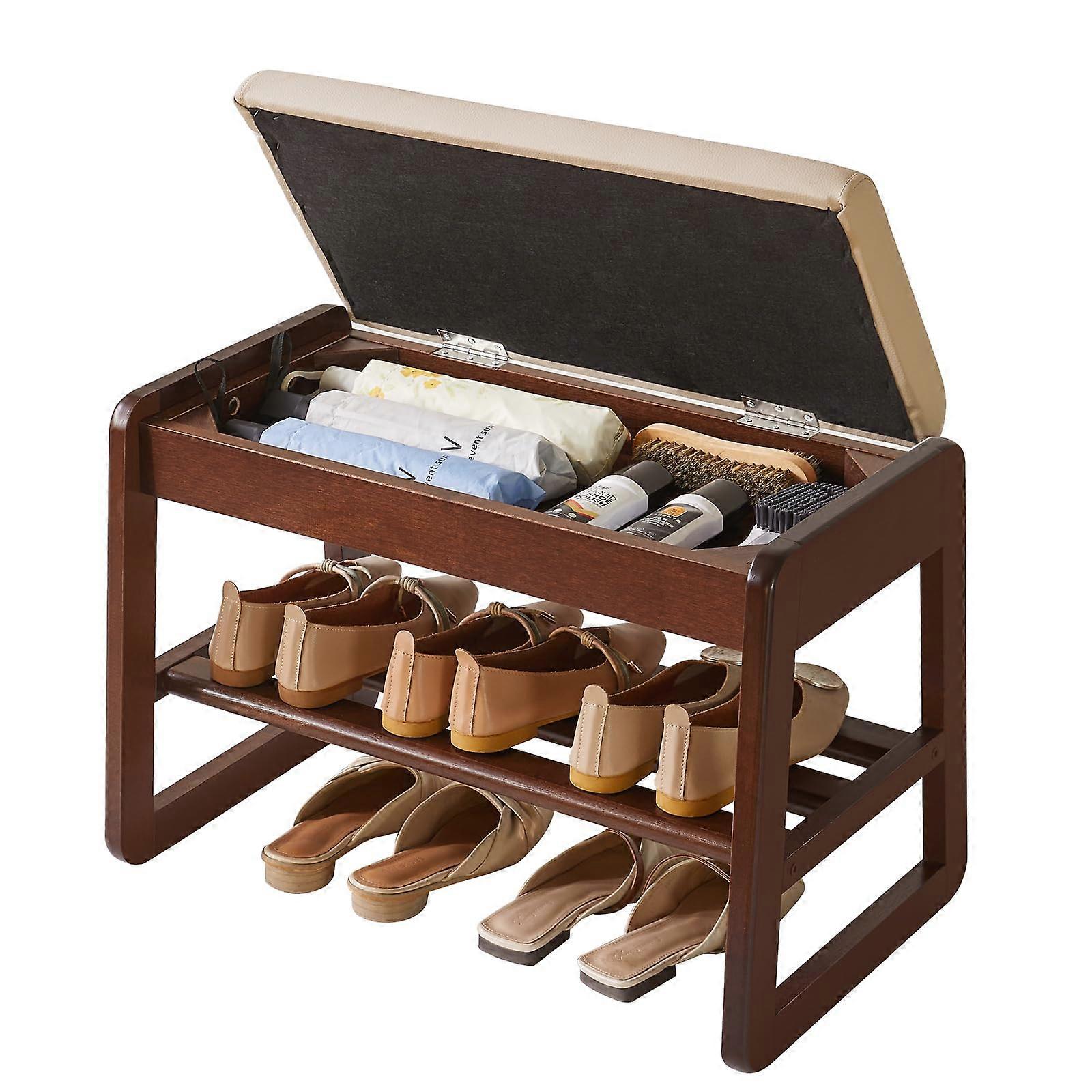 Solid Wood Shoe Storage Bench with Cushion, Flip Hidden Storage, 23.62in Walnut Entryway Rack