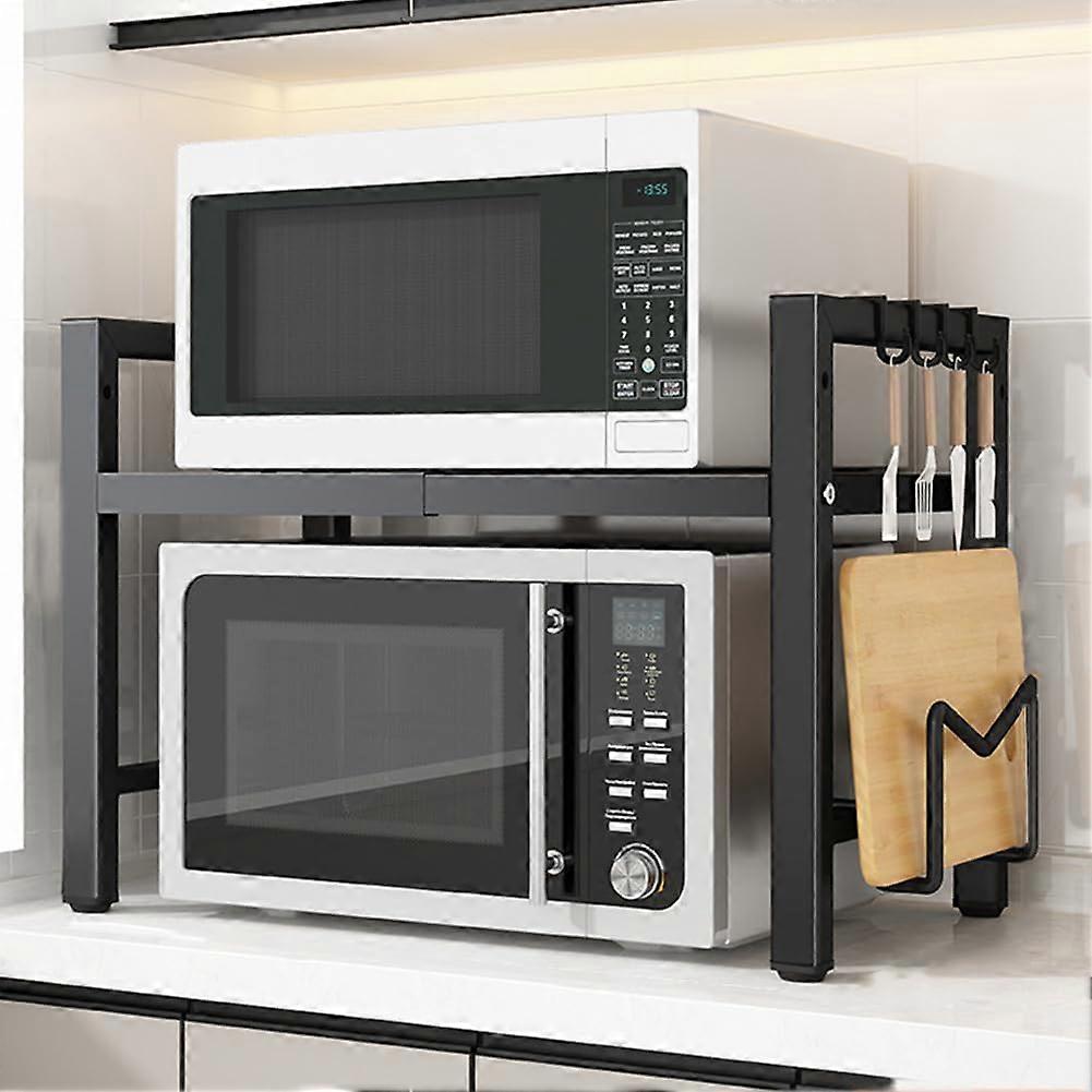 Microwave Oven Rack Adjustable 2Tier Heavy Duty Metal Kitchen Storage Shelf with 6 Hooks