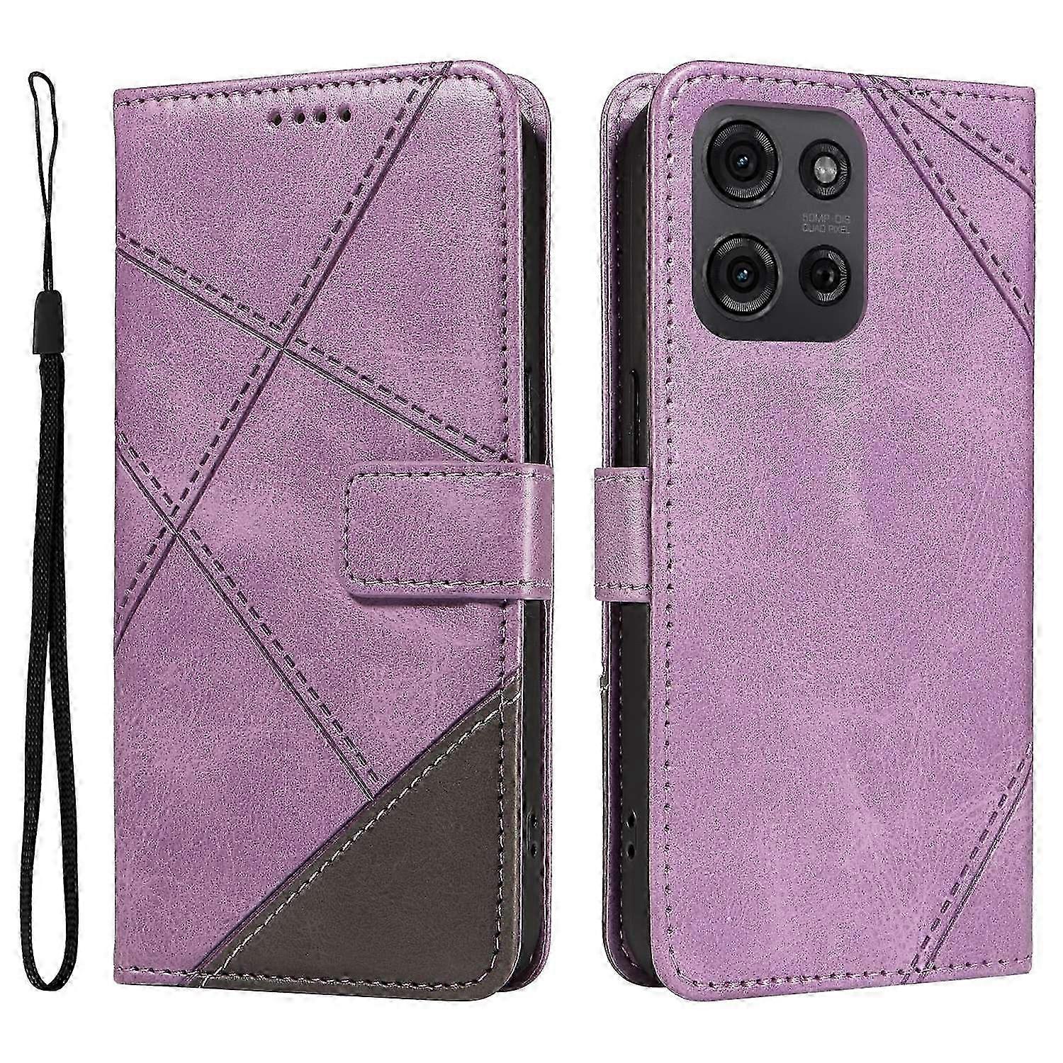 For Motorola Moto G75 5G Case Leather Geometric Line Wallet Phone Cover with Wrist Strap - Light Pur 26s