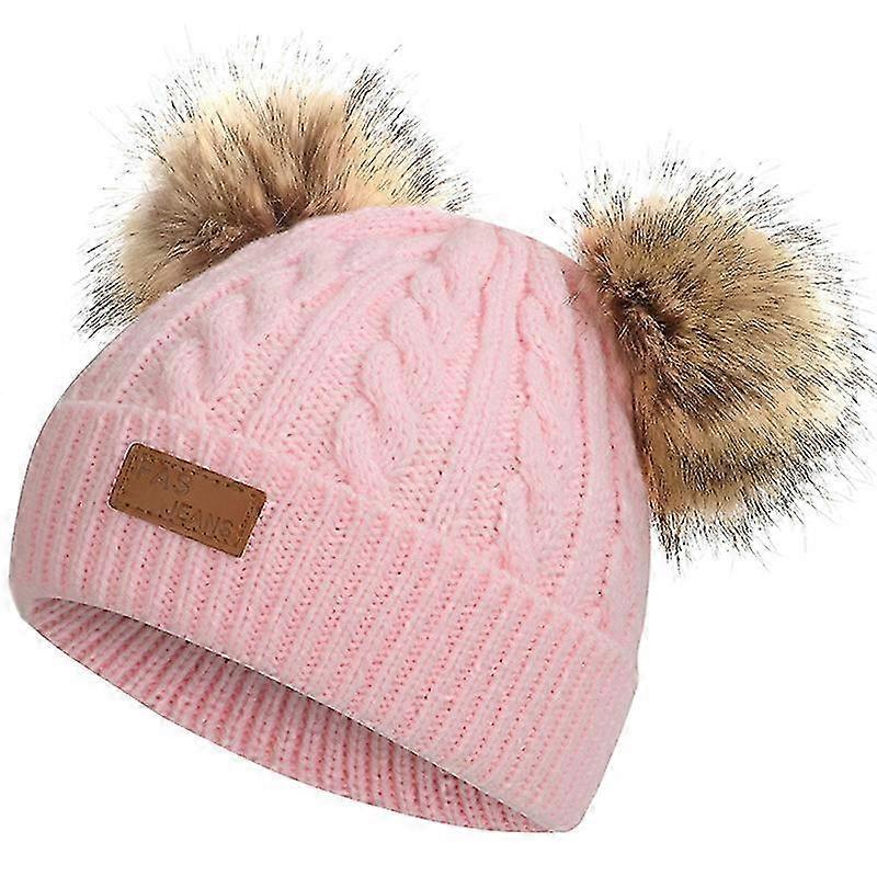 25-26 Kids Infant Boys Girls Beanie Hat Double Pom Pom Bobble Knit Caps