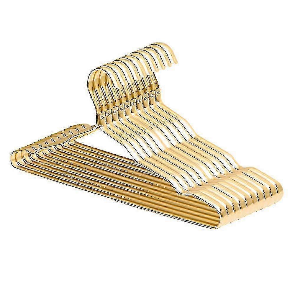 1.: Space-Saving Increases your usable wardrobe space Strong & Broad hangers suitable for heavier garments like suits or jackets Suitable for woolens & delicates, blouses & shirts, trousers& skirts, jackets & coats etc.2.The non slip heavy duty hangers surface smooth,Special shoulder groove design prevents clothing from falling3.Can be the space saving choice for your closet , keep your closet in order and maximize your storage room4.Double Smooth Texture: Doulble making the hanger smooth enough to protect your clothes hanger and hand from Scratch5.Durable & Light Weight: The hanger made of high-quality aluminum alloy,lightweight,durable and anti-deformation.It will be less likely to break than a plastic hanger.colour: goldMaterial: aluminum alloySize: 41x19x1.2cmPackage Contents:10 x Aluminium Alloy HangerOnly the above package content, other products are not included.Note: Light and different displays may cause the color of the item in the picture a little different from the real thing. The measurement allowed error is +/- 1-3cm. Note: Due to the light and screen setting difference, the item's color may be slightly different from the pictures. Please allow slight dimension difference due to different manual measurement.