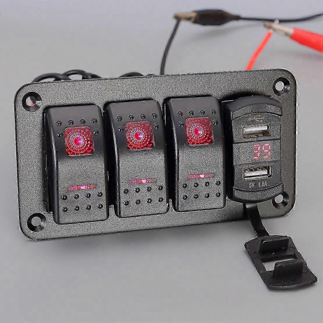 3 Gang Rocker Toggle Switch Panel Dual USB Port for 12V-24V RV Car Truck UTV ATV Marine Boat Caravan Red LED Voltmeter Universal 25-26