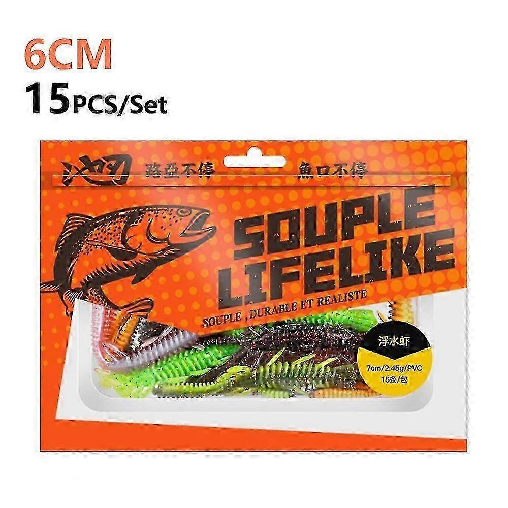 CHIREN 15Pcs Set 6cm Floating Shrimp Fishing Lures Soft Fishing Bait Artificial Swim Lure - Black Gr 25-26