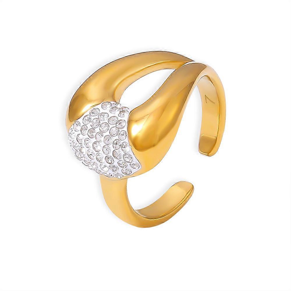 Ring, Irregular Geometric Diamond Inlaid Open Titanium Steel 18K Gold Plated Jewelry