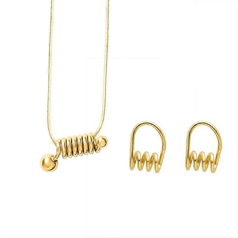 Necklace and Earring Set, Threaded Multi-layer Spring Steel Bead, Small Conch Style, 18K Gold Plated Titanium Steel
